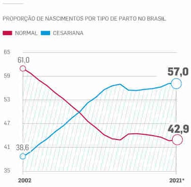 Para dimensionar o problema, a Organização Mundial da Saúde (OMS) recomenda que as taxas de cesarianas não ultrapassem 15% dos partos. Isso significa que estamos quase quatro vezes acima do recomendado!